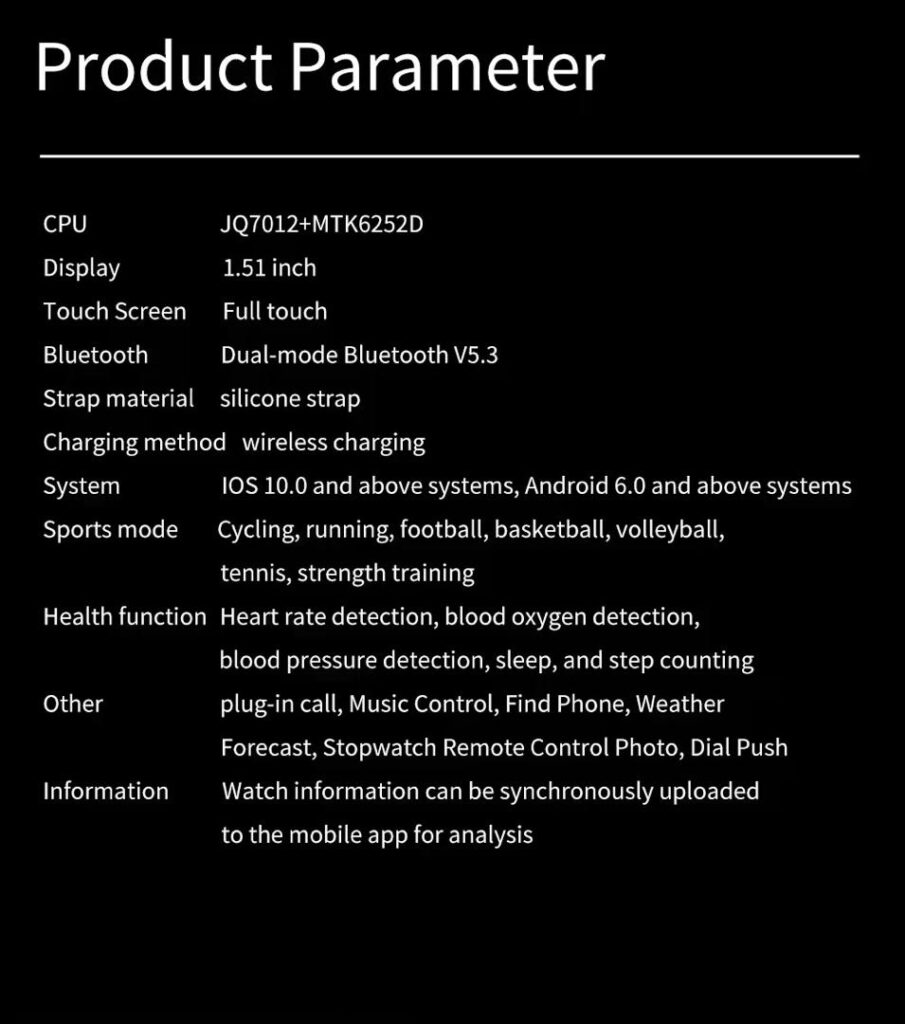 Music playback, stopwatch, countdown, calculator, weather display, female physiological cycle function, remote control for taking photos, wrist lift to light up the screen.